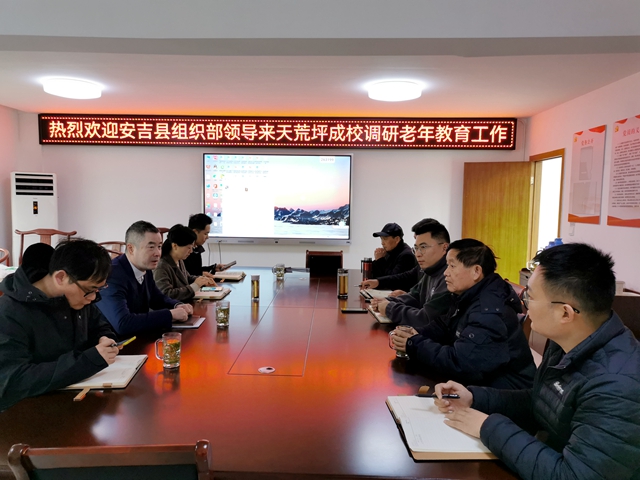 2023年2月22日上午,安吉縣委組織部副部長諸自力一行在天荒坪鎮黨委委員吳國勝和分管教育副鎮長陳一鳴的陪同下蒞臨安吉縣社區教育學院天荒坪分院調研老年教育工作。