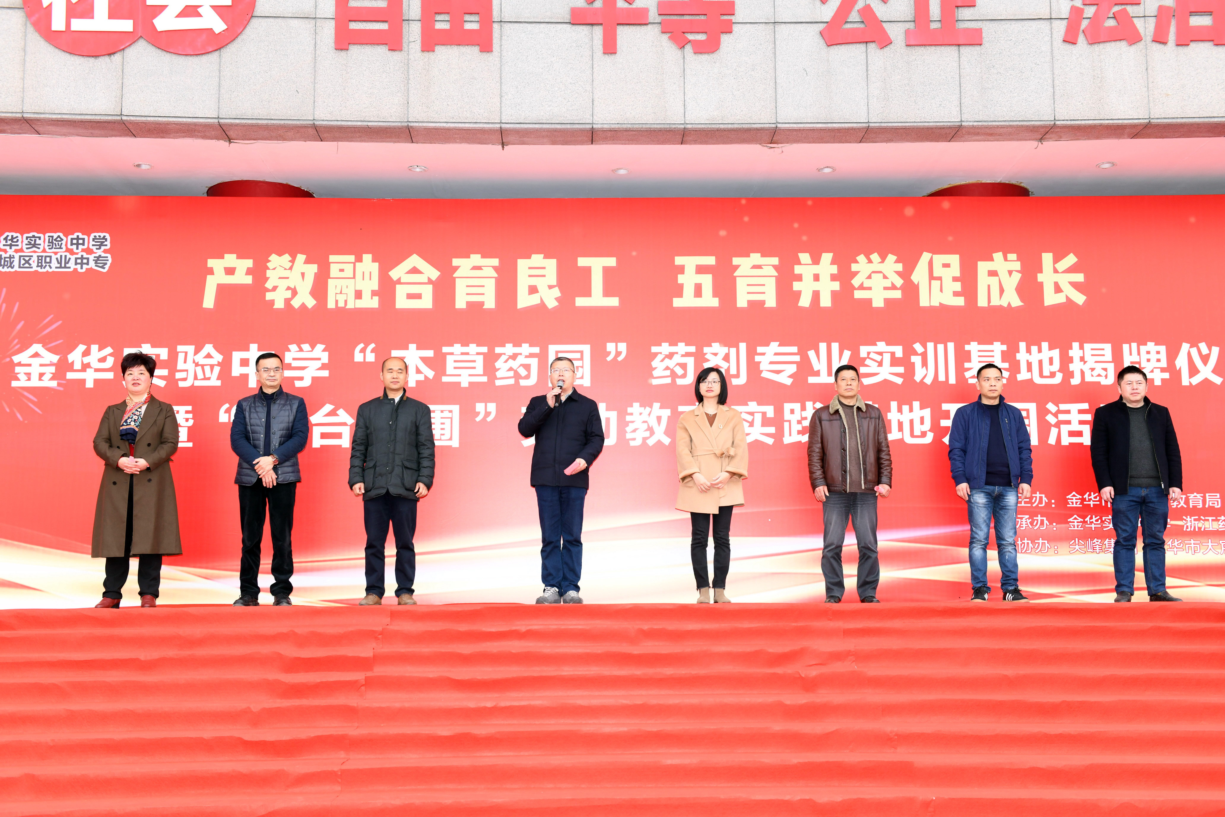隨后,李剛宣布金華實驗中學“本草藥園”藥劑專業實訓基地揭牌儀式暨“文臺菜圃”勞動教育實踐基地開園。