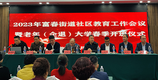 日前,2023年富春街道社區教育工作會議暨老年(企退)大學春季開班儀式在卡特蘭酒店召開。富春街道人大工委副主任華森洪,富陽區教育局教育科長劉忠明,富春街道公共服務辦公室主任楊曉剛,富春街道公共服務辦公室副主任董茂方,富春成校校長孫良杰,富陽社區學院副院長吳凌華,富春成校副校長黃宏忠,富春街道各市民學校負責人、文化員、富春成校成教專干、富春街道老年大學師生代表參加會議,會議由富春成校成教處主任楊曉波主持。