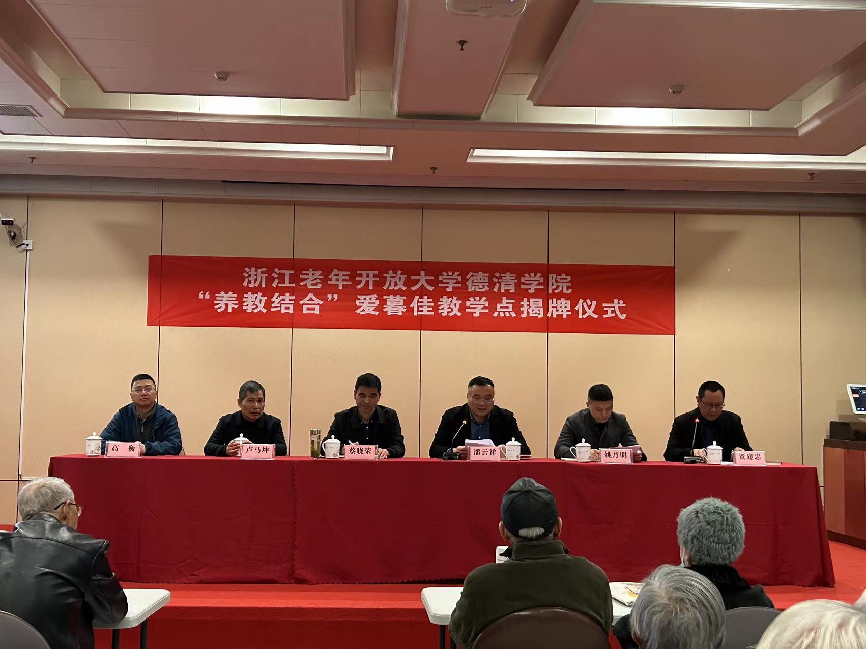 3月24日上午,浙江老年開放大學德清學院“養教結合”愛暮佳教學點舉行揭牌儀式。這是德清縣首個“養教結合”并輻射周邊社區的老年開放大學教學點。德清縣民政局副局長蔡曉榮、縣教育局副局長潘云祥、愛暮佳怡養中心董事長盧馬坤等領導及首批老年學員出席揭牌儀式。揭牌儀式由浙江開放大學德清學院院長賈建忠主持。
