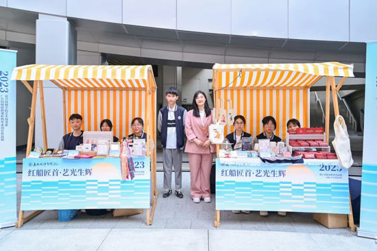 文化藝術中心廣場上,嘉興技師學院的展位熱鬧非凡。以工業機器人、3D打印、烘焙為特色的職業體驗展位上,智能化機器人運作讓參觀者們躍躍欲試,3D打印技術吸引著孩子們探究的目光,精致的“技能:讓生活更美好”主題藝術面包展示著高超的烘焙技藝。此外,今年的職教周特設了非遺特色展位和創意集市。嘉興技師學院非遺展位上,精致可人的唐代茶點——唐果子成為了人氣王,向參觀者展示著非遺魅力與匠心傳承。以“紅船·匠首”“藝光生輝”為主題的創意集市上,一系列校園文創創意滿滿、誠意十足。