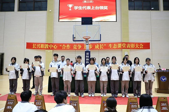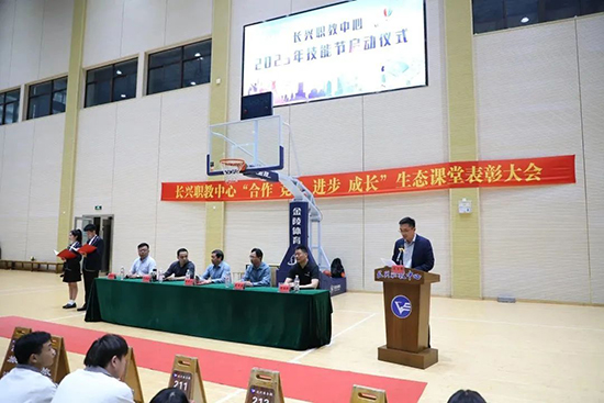 近日,長興職教中心生態課堂期中表彰大會暨2023年校技能節啟動儀式在校體育館舉行,黨委書記戴敦華等校級班子成員以及全體師生參加活動。