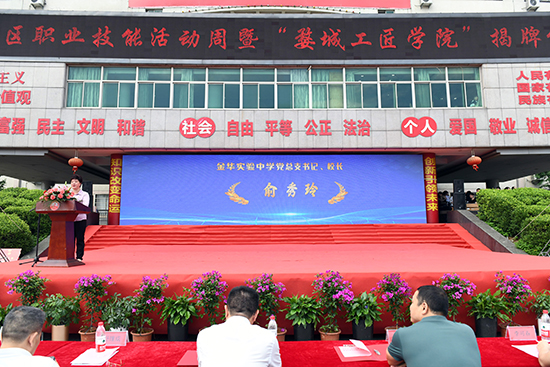 為大力宣傳勞模精神、勞動精神、工匠精神,弘揚(yáng)勞動光榮、技能寶貴、創(chuàng)造偉大的時代風(fēng)尚,展示職業(yè)教育重大改革發(fā)展成果,展現(xiàn)新時代技能人才風(fēng)采,5月18日,婺城區(qū)職業(yè)技能活動周暨“婺城工匠學(xué)院”揭牌儀式在金華實驗中學(xué)成功舉行,本次活動周的主題是“技能——讓生活更美好”。