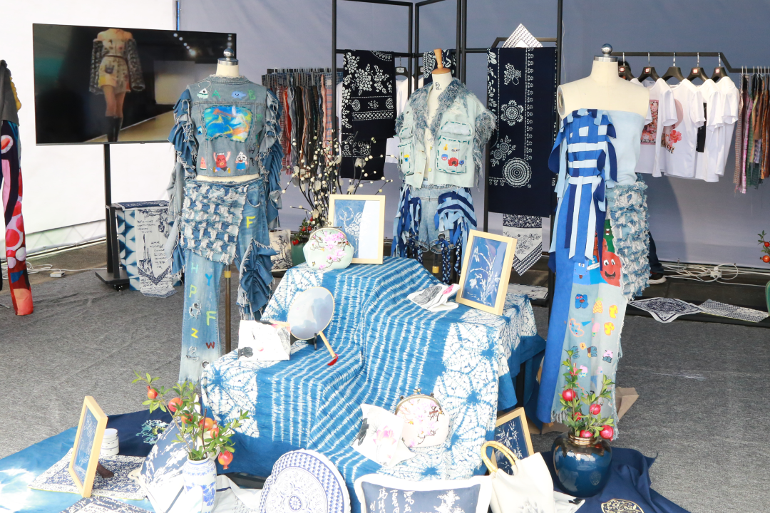 靜態區主要展示輕紡類專業的學生作品。整個展區的作品由紡織、花樣設計、印染和服裝設計四個專業的學生共同完成,實現了專業技能的完美銜接和融合。