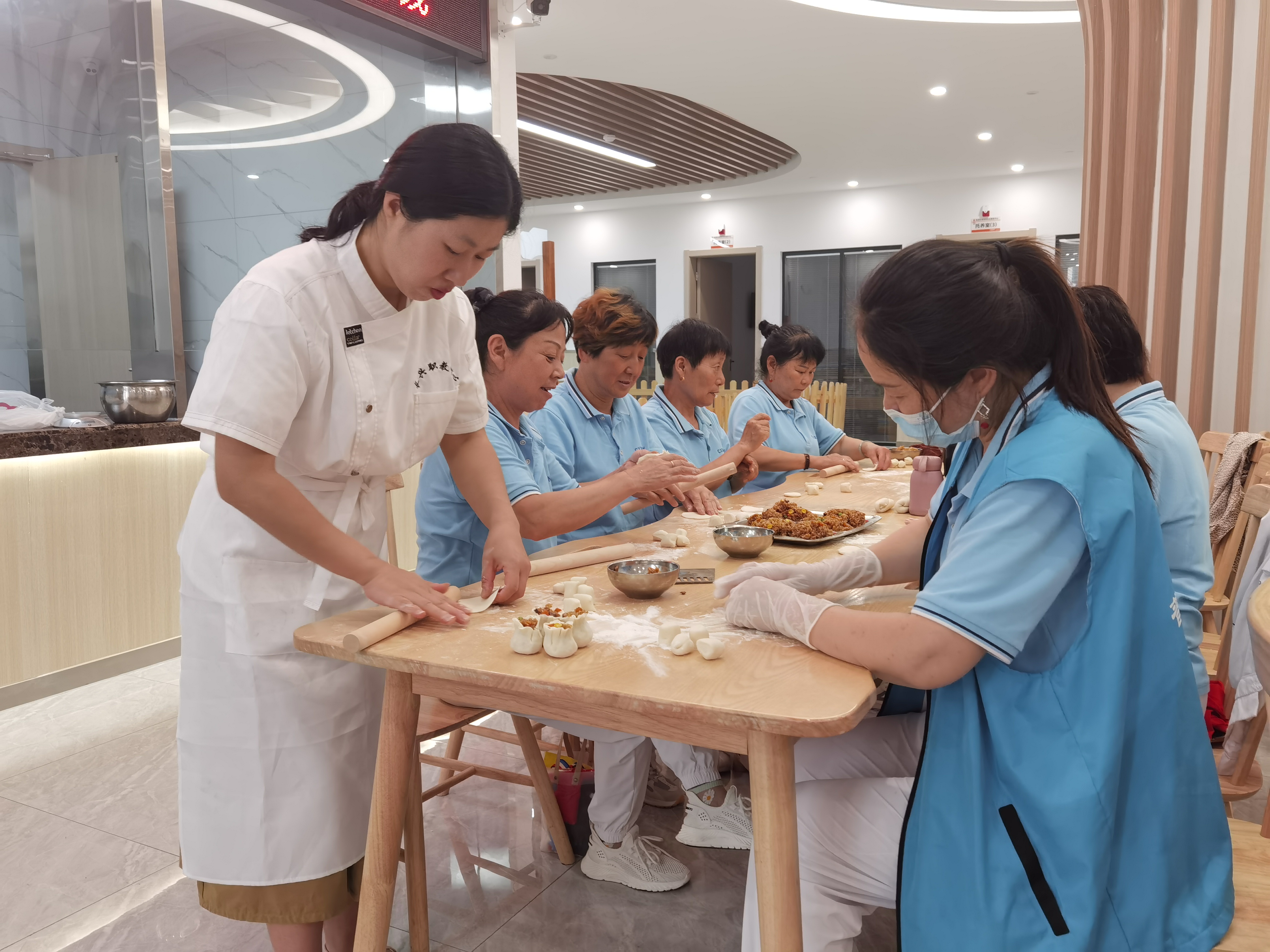 接著,大家圍坐在桌前,跟隨工作人員和老師的腳步,紛紛動手做燒麥,蒸糯米、拌餡料、提前準備好制作燒麥的所有食材,老人們開始嘗試做起來,大家相互交流包燒麥的做法和經(jīng)驗,現(xiàn)場熱鬧非凡。工作人員把包好的燒麥放到蒸鍋里,一個多小時后,包燒麥工作順利完成,第一鍋燒麥也熱氣騰騰地出爐了。工作人員把蒸熟的燒麥分發(fā)給參加活動的老人們,吃著親手做的燒麥,老人們非常高興,紛紛表示,“自己的勞動成果最美味!”