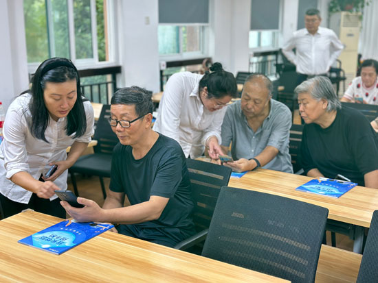 課堂上,叔叔阿姨們被授課內(nèi)容深深吸引——手機太卡如何清理內(nèi)存?怎么查看快捷鍵?如何查看微信步數(shù)?老師采取“理論宣講+現(xiàn)場演示+指導(dǎo)教學(xué)”相結(jié)合的方式,一步步引導(dǎo)老年人學(xué)習(xí)手機操作相關(guān)知識。同時,老師也耐心解答學(xué)員們提出的種種困惑,對不懂的地方進行一對一、手把手的教學(xué),有效解決了老年人“不會用、不敢用、不想用、不能用”智能手機的問題。