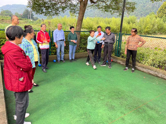地?cái)S球以運(yùn)動(dòng)量小,設(shè)備簡(jiǎn)單,技術(shù)易掌握,動(dòng)作緩慢柔和,沒有劇烈沖撞見長(zhǎng),非常適合老年人運(yùn)動(dòng)。為提高老年人的地?cái)S球運(yùn)動(dòng)水平,近日,安吉縣社區(qū)教育學(xué)院上墅學(xué)習(xí)中心邀請(qǐng)安吉縣地?cái)S球協(xié)會(huì)副會(huì)長(zhǎng)趙明海老師到上墅開展地?cái)S球培訓(xùn)活動(dòng)。