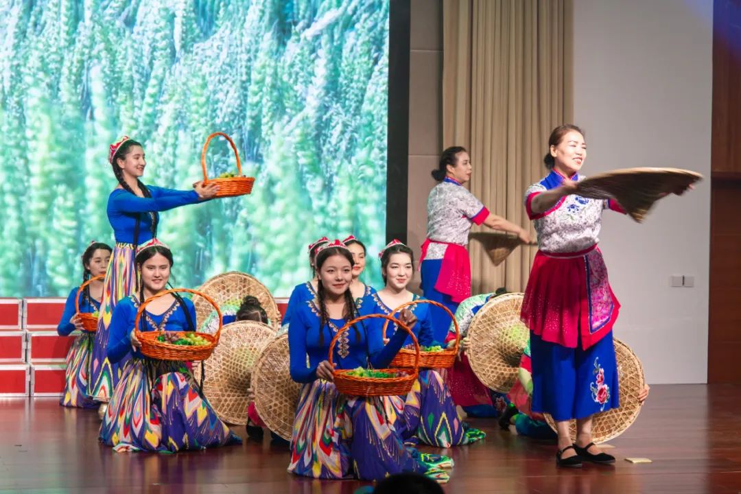 合編合演民族舞《大美“浙·疆”》,由浙江老年開放大學(xué)平湖學(xué)院老年學(xué)員和平湖市職業(yè)中專新疆中職班學(xué)生共同演繹,描繪了我國農(nóng)民在黨的領(lǐng)導(dǎo)下,各民族為慶祝豐收祈福的盛大勞動場景。更加體現(xiàn)浙江省在共同富裕背景下,老年開放大學(xué)率先踐行“兩個先行示范區(qū)”的擔(dān)當(dāng)作為。