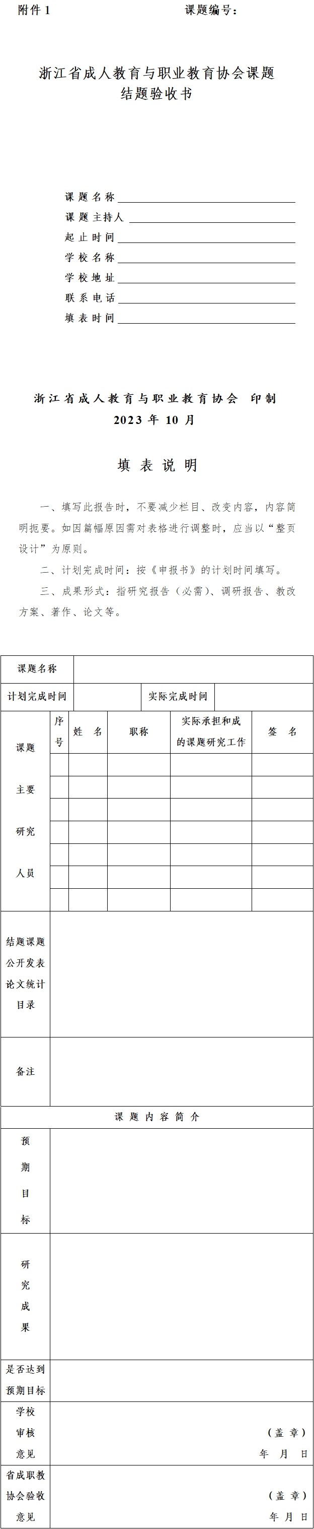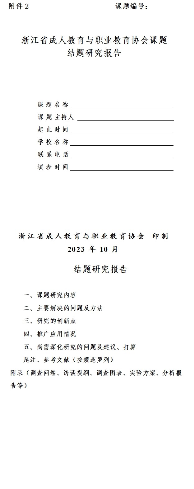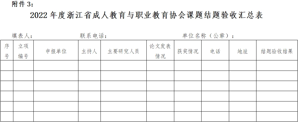 2.中職學校、成人文化技術學校(社區學校)會員單位立項課題,如有在學術期刊上公開發表論文或獲得市級以上獎項,根據《科研課題管理辦法》相關規定將直接予以結題。發表論文或獲獎需標注獲浙江省成人教育與職業教育協會課題立項。