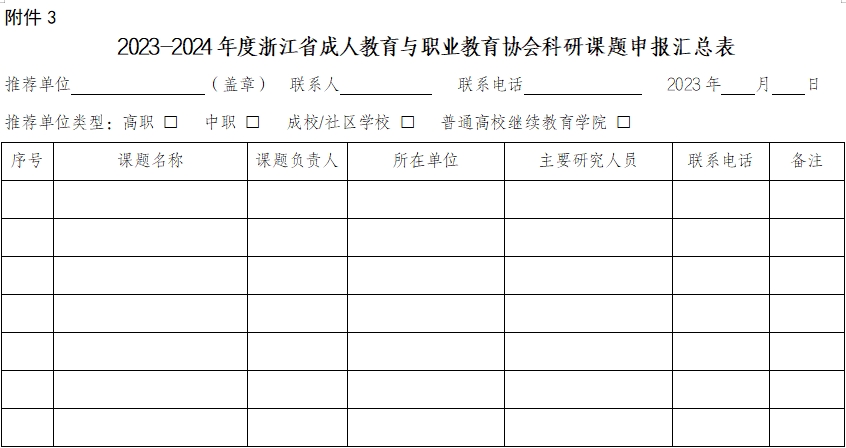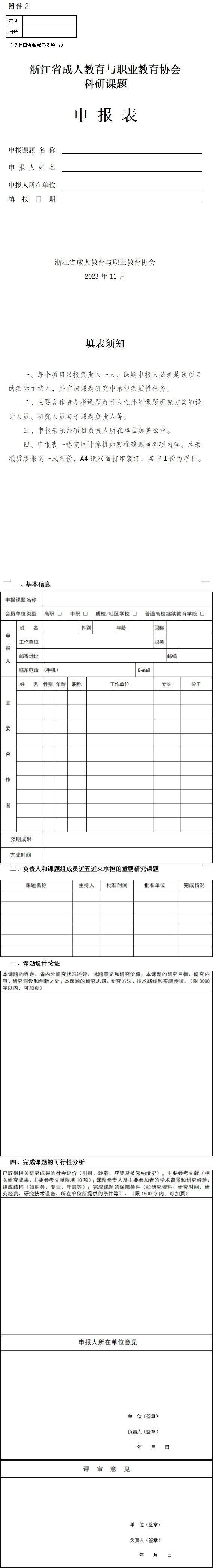 2.浙江省成人教育與職業(yè)教育協(xié)會科研課題申報(bào)表