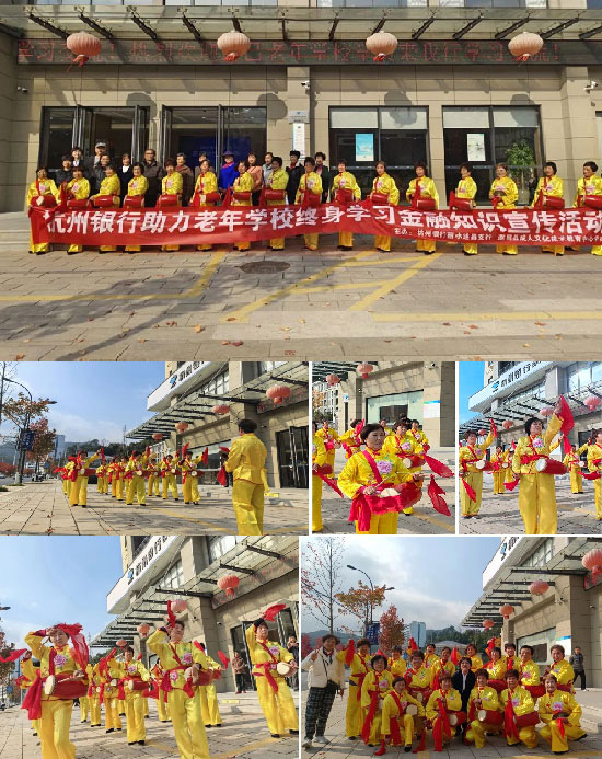 “咚咚咚,腰鼓敲起來”!明媚的陽光、絢麗的色彩、響亮的鼓聲,12月1日,杭州銀行麗水遂昌支行的大門口熱鬧非凡,遂昌縣妙高街道老年學校腰鼓隊近40人在這里開課!