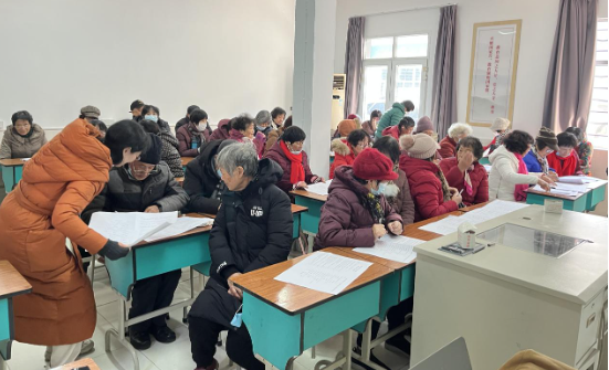 儀式結束后,到場學員們參加了本學期的期末考試,考試現場,學員們仔細審題,認真作答,考場紀律良好。通過此次考試,讓學員們系統地回顧了這一學期所學習的教學內容。考試結束后,學員們還相互交流了一學期的學習內容及今天的考試心得,大家紛紛表示將繼續參加下一季度的學習,讓自己的晚年生活更加豐富多彩。