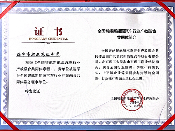 12月26日,由廣汽埃安新能源汽車股份有限公司、北京理工大學(xué)、山東理工職業(yè)學(xué)院共同牽頭,聯(lián)合相關(guān)企業(yè)、行業(yè)協(xié)會、有關(guān)院校、科研院所等共同組成的“全國智能新能源汽車行業(yè)產(chǎn)教融合共同體”成立大會在廣州舉行。海職高黨委委員、副校長陸益飛,新能源專業(yè)負責(zé)人高暉應(yīng)邀參加,學(xué)校當(dāng)選常務(wù)理事單位。