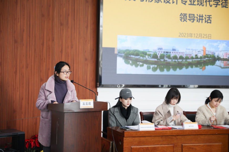 企業代表,蔡子文化傳播有限公司負責人蔡美嬌在發言中表示,校企合作使得學校與企業得以互補優勢,共享資源。學校充分利用自身的科研與人才優勢,企業則發揮資源與市場優勢,雙方真誠合作,雙向賦能,共同培養出既符合學校教育要求,又能滿足企業需求,且具備社會信任的優秀專業人才。