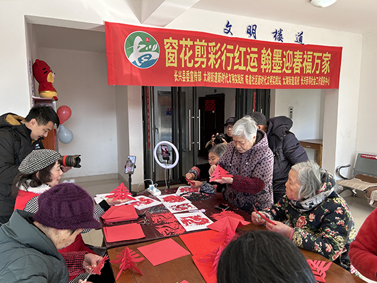 不遠處的樓道里傳出宛轉悠揚的戲曲聲,一曲經典越劇在文明樓道睦鄰廳內拉開帷幕,這是熱愛戲曲的居民們自發組建的一支表演團隊,他們中年紀最大的已達到75歲,因為藝術讓他們相遇,因為熱愛讓他們聚集在此。現場來了不少觀看表演的居民,時不時發出熱烈的叫好聲;隔壁的共享廳也不閑著,來自太湖街道成校的王老師正在剪窗花指導,現場還開起了抖音直播,大家認真學著各種剪紙技巧,盡情地發揮自己的創意,切身感受中華民族傳統民間藝術的魅力,春、福、喜、龍……大家剪出各式各樣的美妙圖案,借一剪一紙,裁出紙上年味,傳達樸素愿望,喜迎龍年新歲月。黨員志愿者和樓道長們則是在一旁為前來的孩子們制作爆米花,一粒粒香甜可口的爆米花帶來的不止美味,更是孩子們對新春的期盼!