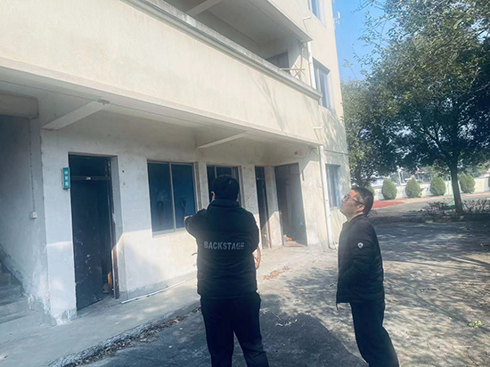 走進諸暨市楓橋鎮初級中學的教工宿舍,共6層,每層8個房間,2至6樓零星有人住著,陽臺懸掛著衣服,一層兩個樓梯口都設置了樓梯門。檢查組成員對樓梯下、滅火設施、安全疏散指示標志、樓道、走廊與電器使用情況進行檢查,向隨同的楓橋鎮初級中學安管主任湯鋼锜指出存在的問題予以整改。隨后,檢查人員來到楓橋鎮全堂小學、楓橋鎮梅苑小學,兩所小學的宿舍都已不住人,閑置著,檢查人員要求兩所學校的校長對宿舍樓采取斷電關閉各房門的措施,凡一樓有通往樓上的樓道門一并關閉,杜絕學生前往游玩,平時落實專人看管關閉情況。到楓橋鎮洪綬小學的教工宿舍樓,在學校安管副校長何聰聰與總務主任郭鵬程的陪同下對6層宿舍樓作了相應的檢查,對存在的問題指出要求整改。