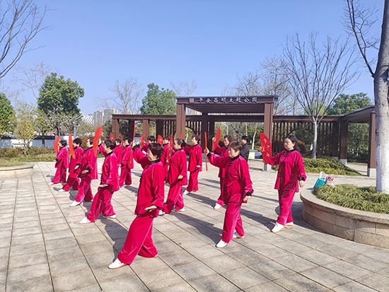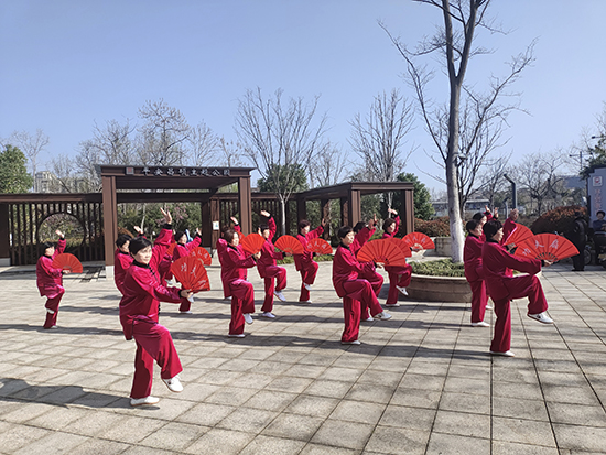 活動(dòng)現(xiàn)場(chǎng),老年學(xué)員個(gè)個(gè)充滿熱情,精神抖擻,一襲紅色練功服盡顯驚艷。老人們手執(zhí)鮮紅耀眼的功夫扇,扎著馬步,舉手投足之間展現(xiàn)出意氣風(fēng)發(fā)、健康向上的精神風(fēng)貌,形成一道靚麗的城市風(fēng)景線。指導(dǎo)老師手持紅扇子,一招一式耐心分解、示范每一個(gè)動(dòng)作。老人們凝神斂氣,專心致志,步調(diào)一致、整齊劃一,跟著指導(dǎo)老師學(xué)習(xí)太極功夫扇的每一個(gè)細(xì)節(jié)和動(dòng)作要領(lǐng)。現(xiàn)場(chǎng)吸引了周邊晨練路過(guò)的居民,他們手里雖然沒(méi)有健身道具,但對(duì)太極功夫扇“一見(jiàn)鐘情”,投身培訓(xùn)的隊(duì)伍中,在廣場(chǎng)旁的空地處跟隨著指導(dǎo)老師“比劃”起來(lái)。培訓(xùn)活動(dòng)結(jié)束,老人們興致盎然,遲遲不肯離去,大家共同分享健身活動(dòng)帶來(lái)的快樂(lè)。居民李大姐高興地說(shuō),“太極功夫扇融合健身養(yǎng)生為一體,簡(jiǎn)單易學(xué)。非常感謝昌碩成校組織開(kāi)展的培訓(xùn)活動(dòng),既鍛煉了身體,又結(jié)識(shí)了不少老年朋友,真的很開(kāi)心。”