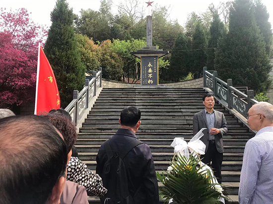 一行人來到陵園祭掃烈士墓。楓橋鎮(zhèn)退教分會主任胡國勝在陵園前作《天地英雄氣 千秋尚凜然》的講話。著重介紹了洄村十九英烈之一周達(1913-1947)的革命事跡。胡國勝指出:“今天,我們來這里祭奠革命先烈,是為了追尋英雄足跡,繼承先烈遺志,弘揚民族精神,激發(fā)愛國情懷,增強責(zé)任感和使命感;目的就是要通過祭掃烈士墓活動喚起后人對革命先烈的追思和敬慕,體驗感恩之心,講好紅色故事,汲取先輩的精神力量,為中華民族的振興而奮斗!”