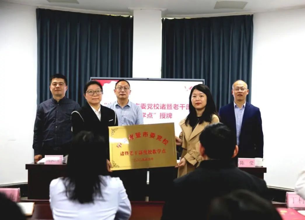 諸暨市委老干部局副局長周陽生介紹了合作共建諸暨老干部黨校的工作背景,老干部局局長陳錫均與市委黨校常務副校長田海斌簽署了共建諸暨老干部黨校戰略合作協議,諸暨市委黨校趙國強、丁利培、鄭功帥等六位教師被聘為首批諸暨老干部黨校講師,諸暨市老年大學被授予“中共諸暨市委黨校諸暨老干部黨校教學點”牌匾并張掛。