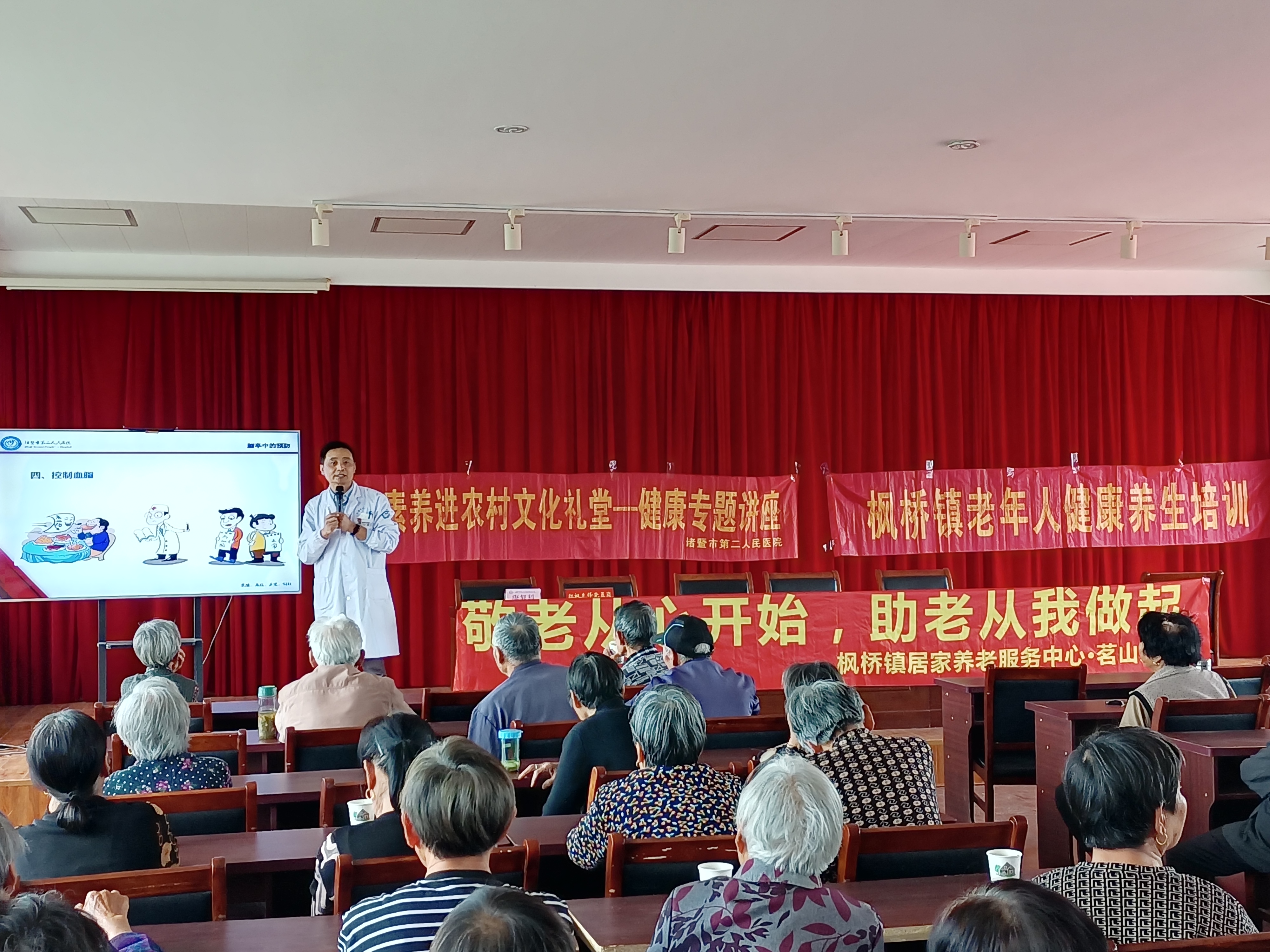 4月25日下午,諸暨市楓橋鎮(zhèn)老年學(xué)校邀請諸暨市第二人民醫(yī)院的王嘉未與問全飛主治醫(yī)師來到楓橋鎮(zhèn)霞朗橋村文化禮堂,為老年村民講養(yǎng)生保健知識。