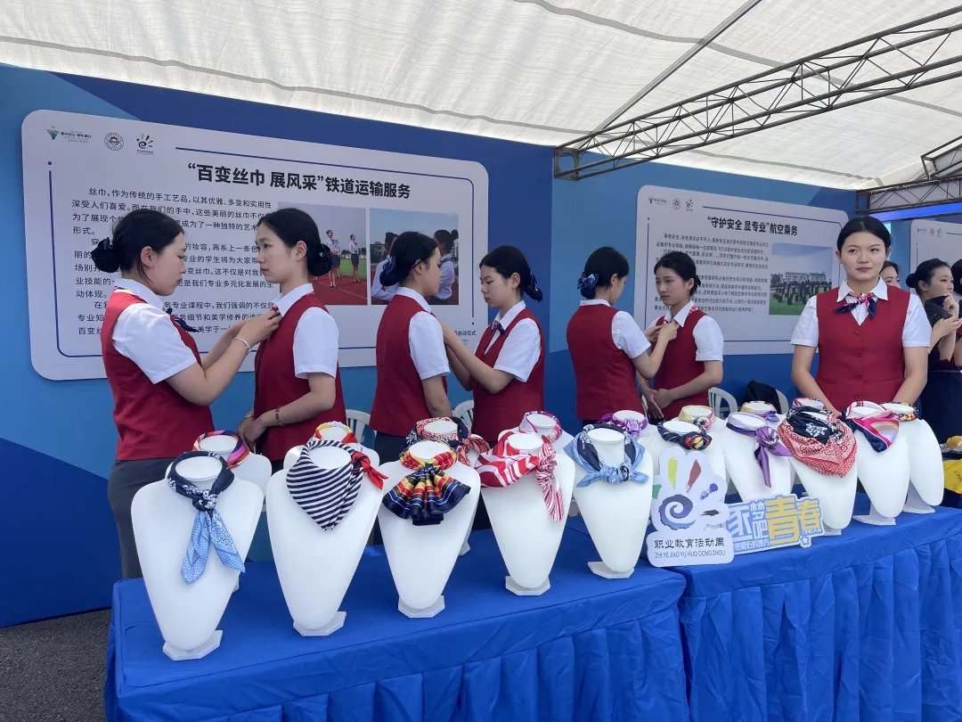 5月16日,學校學生穿上專業制服,化上精致的妝容,再系上一條色彩亮麗的絲巾……在職業教育活動現場,學校的動態展示項目“百變絲巾”吸引眾多觀眾駐足觀看,獲得與會領導的肯定。