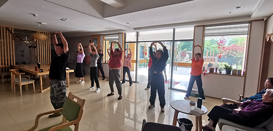 在清晨陽(yáng)光的照耀下,老人們?cè)缭绲貋?lái)到了學(xué)堂的空地上。山川鄉(xiāng)老年學(xué)校聘請(qǐng)的安吉縣太極協(xié)會(huì)副會(huì)長(zhǎng)盧偉民老師早已等候在那里。盧老師先為大家簡(jiǎn)單講解了太極的基礎(chǔ)知識(shí),并做了簡(jiǎn)單的演練。隨后,老人們?cè)诒R老師的帶領(lǐng)下,先開(kāi)始學(xué)習(xí)八段錦基礎(chǔ)動(dòng)作。他們的動(dòng)作雖然不夠優(yōu)美,卻個(gè)個(gè)全神貫注,在悠揚(yáng)舒緩的音樂(lè)聲中舒腰展臂,緩緩揮掌,人人精神抖擻。臨近中午,陽(yáng)光漸盛,大家又轉(zhuǎn)移到室內(nèi),學(xué)習(xí)興趣卻絲毫未減。山村老人愛(ài)學(xué)樂(lè)學(xué)、積極向上的精神風(fēng)貌得到了充分的展示。