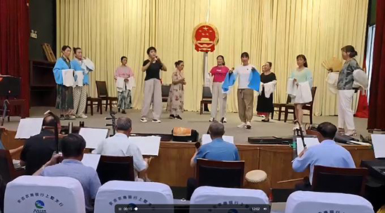為更好地豐富居民的精神文化生活,弘揚民族文化,營造和諧社會氛圍,6月18日上午,安吉縣社區(qū)教育學(xué)院上墅學(xué)習(xí)中心銀齡曲藝社團的學(xué)員在上墅村老年學(xué)堂進行《五女拜壽》選段的彩排。