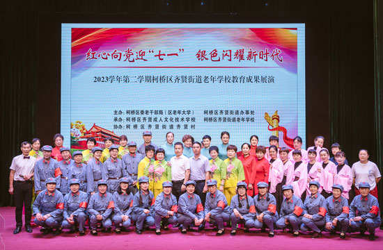 區(qū)委老干部局副局長王慧,齊賢街道黨工委委員、組織委員陳瑩,齊賢成人文化技術(shù)學校(老年學校)校長馮明海,副校長王紅江觀看了演出。