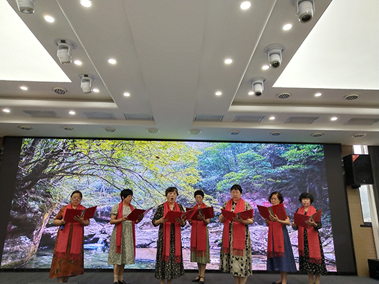 葉珠女常務副會長作簡短致辭后,《祖國!偉大的祖國!》……縣退教協實驗小學分會長尹小梅與7位老師用激情澎湃的朗讀,為大家展現了祖國的壯麗山河與璀璨文明,拉開了慶祝“七一”建黨節朗誦活動的序幕。