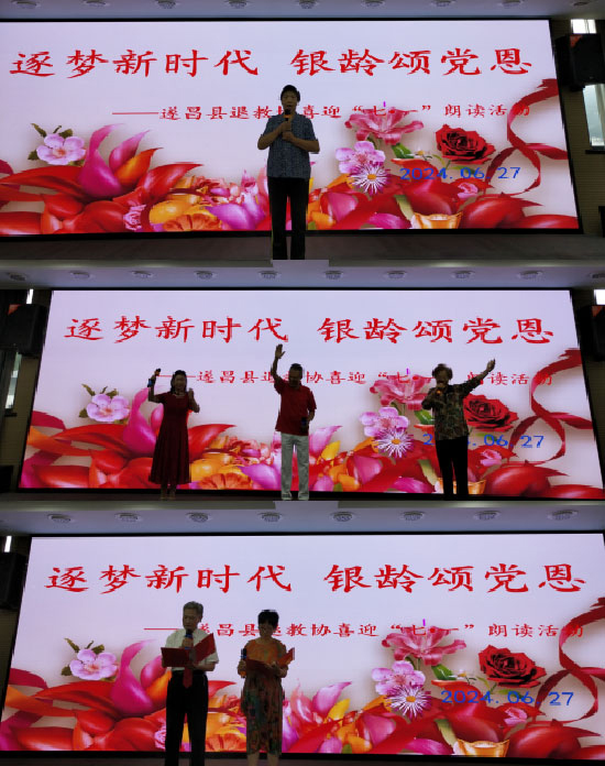 “七一”前夕,遂昌縣教師發展中心5樓多功能教室里一片歡聲笑語,縣退教協以“逐夢新時代 銀齡頌黨恩”為主題的喜迎中國共產黨建黨103周年朗誦活動在此舉行。