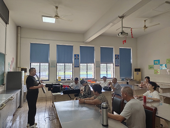 簡(jiǎn)短的開班儀式結(jié)束后,劉老師對(duì)培訓(xùn)班課程進(jìn)行簡(jiǎn)單介紹:“針對(duì)老年學(xué)員實(shí)際情況,課程設(shè)計(jì)注重基礎(chǔ)與實(shí)踐結(jié)合,從電吹管的基礎(chǔ)知識(shí)、演奏技巧到音樂理論,再到曲目演奏,循序漸進(jìn),目的是讓零基礎(chǔ)的學(xué)員也能在短時(shí)間內(nèi)掌握電吹管演奏的基本技能。”此外,培訓(xùn)班計(jì)劃安排定期音樂交流會(huì),讓學(xué)員們有機(jī)會(huì)展示學(xué)習(xí)成果,互相學(xué)習(xí),共同進(jìn)步。學(xué)員們紛紛表達(dá)對(duì)學(xué)習(xí)電吹管的期待,希望通過這次學(xué)習(xí),不僅能夠掌握一項(xiàng)新技能,更能在音樂的陪伴下,讓晚年生活更加充實(shí)和快樂。