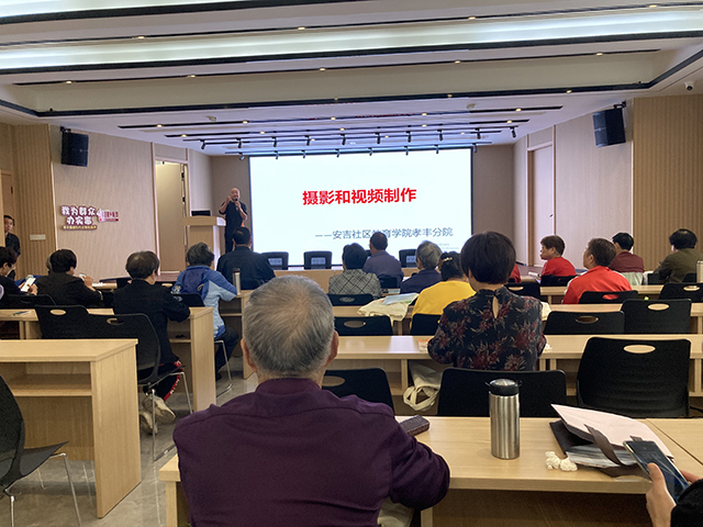 為更好地幫助南臺社區老年人掌握手機攝影技巧,豐富精神文化生活。10月22日上午,安吉社區教育學院孝豐分院在南臺社區文化禮堂開展一場別開生面的手機攝影與視頻制作培訓。本次培訓共有40余名老年人參加。