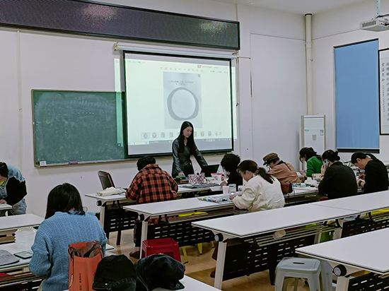 此次培訓由非遺傳承人施娟云授課。施娟云老師憑借著豐富的經驗和精湛的技藝,為學員們帶來了一場別開生面的石畫之旅。她耐心地講解石頭畫的創作技巧和藝術理念,從選材、構圖到上色,每一個環節都細致入微。學員們聚精會神地聆聽,不時拿起畫筆在石頭上嘗試,現場學習氛圍濃厚。