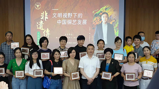 “朱炳仁·銅”終身學習品牌項目致力于非遺文化的傳播和傳承。加入了杭州“薪火傳承——工藝美術大師帶徒弟學藝”活動中,并取得明顯成效,出師的學生都能獨當一面,成為了工藝美術事業(yè)中的一份子,也為企業(yè)創(chuàng)造了不少功績。之后的“薪火傳承計劃”中不僅保留了工美大師帶徒授藝,順應“互聯網+”“文化+”的融合發(fā)展趨勢,吸引了多家線上藝術品推廣平臺的參加,一大批活躍在互聯網上的“新匠人”群體,將由大師們授藝,使傳統(tǒng)工藝傳承保護與新產業(yè)、新消費緊密結合,讓更多的良品美器走進老百姓的美好生活。