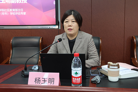 下午,上海市靜安社區學院社區教育部主任、上海市街鎮社區(老年)學校評估專家楊玉明副教授作題為《上海靜安區老年教育實踐分享》的專題講座。楊玉明副教授闡述了老年教育的基礎理論,通過案例分析、優秀課例分享了上海市靜安區老年教育的隊伍建設、課程建設與教學實施狀況,予人啟迪。