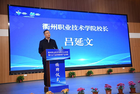 衢州職業(yè)技術(shù)學(xué)院黨委副書(shū)記、校長(zhǎng)呂延文表示,此次揭牌儀式是衢州職業(yè)技術(shù)學(xué)院與江山市政府、江山市門(mén)業(yè)協(xié)會(huì)、衢州第二中專(zhuān)深化產(chǎn)教融合,服務(wù)地方經(jīng)濟(jì)發(fā)展的重要舉措。他強(qiáng)調(diào),衢州職業(yè)技術(shù)學(xué)院江山學(xué)院暨江山門(mén)業(yè)定制家居產(chǎn)業(yè)學(xué)院將圍繞江山市主導(dǎo)產(chǎn)業(yè)和新興產(chǎn)業(yè)發(fā)展需求,精準(zhǔn)對(duì)接企業(yè)標(biāo)準(zhǔn),優(yōu)化課程體系,強(qiáng)化實(shí)踐教學(xué),努力培養(yǎng)出更多符合市場(chǎng)需求的高素質(zhì)技能型人才。他表示,衢州職業(yè)技術(shù)學(xué)院江山學(xué)院暨江山門(mén)業(yè)定制家居產(chǎn)業(yè)學(xué)院將進(jìn)一步加強(qiáng)與政府、企業(yè)等各方面的溝通協(xié)作,努力辦出特色、水平、成效,成為服務(wù)江山市經(jīng)濟(jì)高質(zhì)量發(fā)展的生力軍。