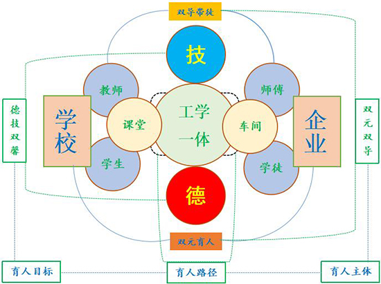 “工學一體,雙元雙導,德技雙馨”人才培養模式架構圖