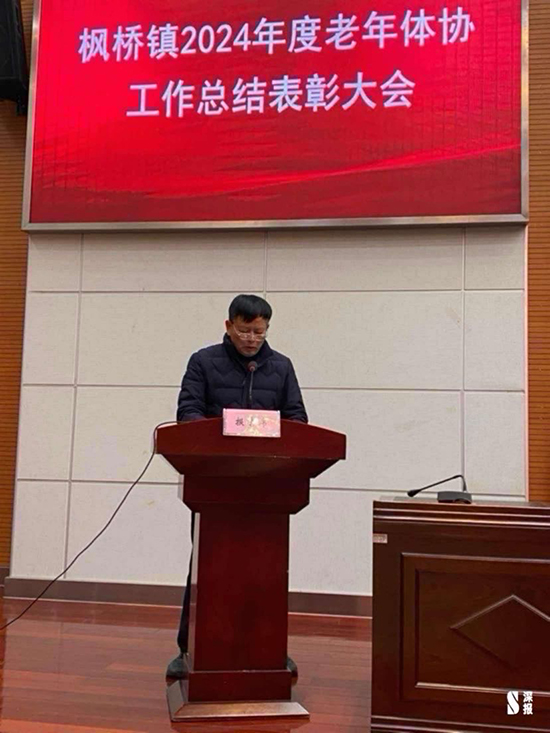 酈棟材講話。表示祝賀與感謝,從“組織強”“獎項廣”“活動實”三個方面對鎮老年體協工作給予充分肯定。分別從“拓展廣度”“提高溫度”“挖掘深度”提出了新的要求,希望各村(社區)老年組織、與會代表繼續做好先行者,用心用情,齊心協力,讓全鎮的老年體育工作更上一層樓,為傳播“楓橋經驗”貢獻更大的力量!最后,他代表鎮黨委政府向全鎮老年朋友送上新年祝福,祝福大家身體健康,笑口常開!