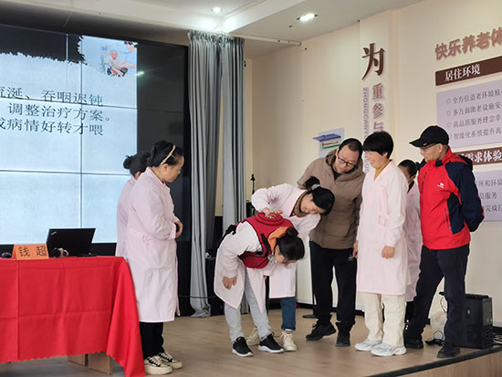 簽約過后,備受期待的老人風(fēng)險(xiǎn)處理與急救培訓(xùn)講座緊鑼密鼓展開。專業(yè)教師錢超老師聚焦老年人日常生活中的跌倒、突發(fā)心腦血管疾病等常見風(fēng)險(xiǎn),運(yùn)用模擬人偶、視頻案例等直觀方式,深入淺出講解心肺復(fù)蘇、氣道異物梗阻等急救技巧。臺(tái)下護(hù)工全神貫注,不時(shí)提出疑問,互動(dòng)環(huán)節(jié)中,多位護(hù)工踴躍上臺(tái)實(shí)操練習(xí),在錢老師的悉心指導(dǎo)下,逐漸掌握關(guān)鍵要領(lǐng),現(xiàn)場(chǎng)學(xué)習(xí)氛圍濃厚熱烈。