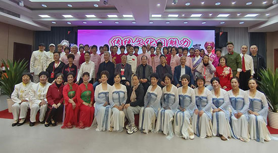 遂昌縣教師發(fā)展中心五樓多功能室還舉行了匯報(bào)演出,共呈現(xiàn) 11 個(gè)節(jié)目。其中,有服裝絢麗、舞姿優(yōu)美的《相遇》《娥嫚》等舞蹈;有盡顯旗袍韻味的《祝福祖國》旗袍秀;有剛?cè)岵?jì)的太極拳表演;還有技藝精湛的越劇《十八相送》、幽默詼諧的三句半,以及遂昌 “快板奶奶” 自編自演、節(jié)奏明快的《退教協(xié)會(huì)活動(dòng)多》。最后,越劇《沒有共產(chǎn)黨就沒有新中國》將演出推向高潮,充分展現(xiàn)了遂昌銀齡教師的精神風(fēng)貌,為領(lǐng)導(dǎo)嘉賓獻(xiàn)上了一場視覺盛宴。