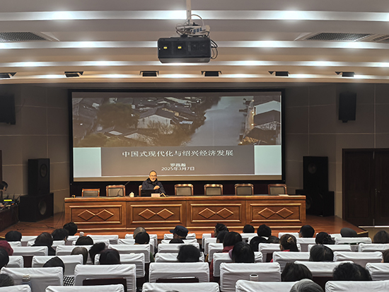 隨后,孫端成校“幸福·共富”大講堂第二期開講。紹興文理學院經濟系副主任羅昌瀚作了《中國式現代化和紹興經濟發展》的主題報告。報告從宏觀經濟形勢與政策、解讀中國式現代化、紹興經濟的發展與展望等三個方面作了介紹,既有理論的深度,又有鮮活的案例,給與會人員打開了一個廣闊的視角。