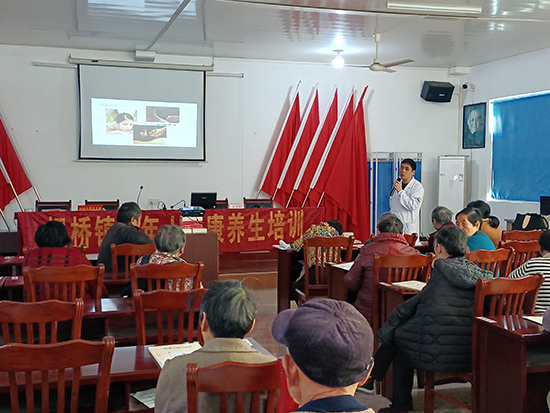 3月20日下午,諸暨市楓橋鎮社區教育學校連同諸暨市第二人民醫院中醫科副主任鐘強來到楓橋鎮東三新村,在文化禮堂內對老年人進行健康科普。