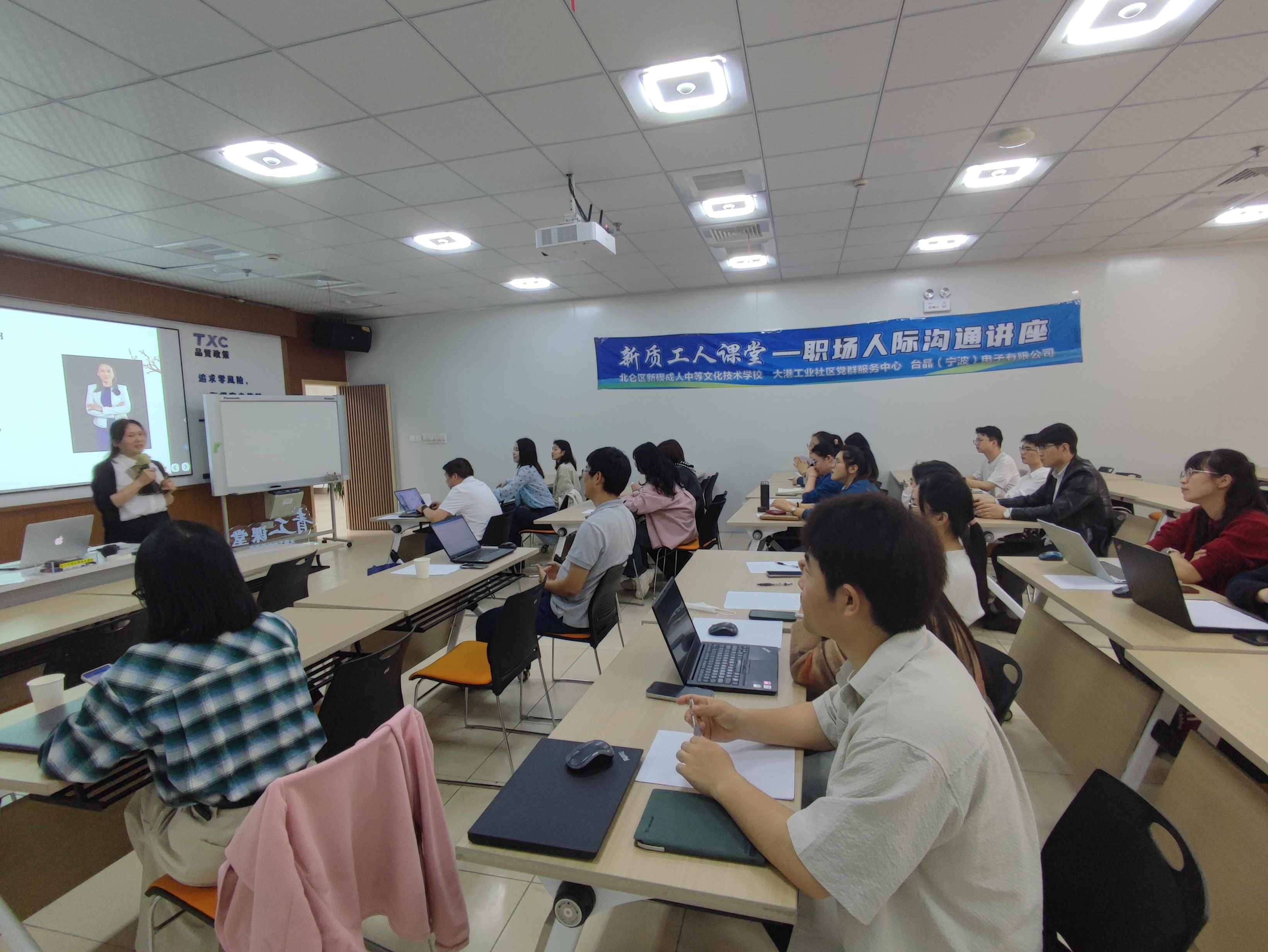 近日,應(yīng)臺晶(寧波)電子有限公司邀請,新碶成校邱變枝老師走進(jìn)新碶街道大港工業(yè)社區(qū),為該企業(yè)員工帶來了一場主題為《架起你我之間的彩虹——人際關(guān)系溝通技巧分析》的精彩講座。邱變枝老師長期致力于心理健康教育工作,具有豐富的企事業(yè)單位、社區(qū)、學(xué)校等領(lǐng)域的授課經(jīng)驗,其生動專業(yè)的講座風(fēng)格廣受好評。