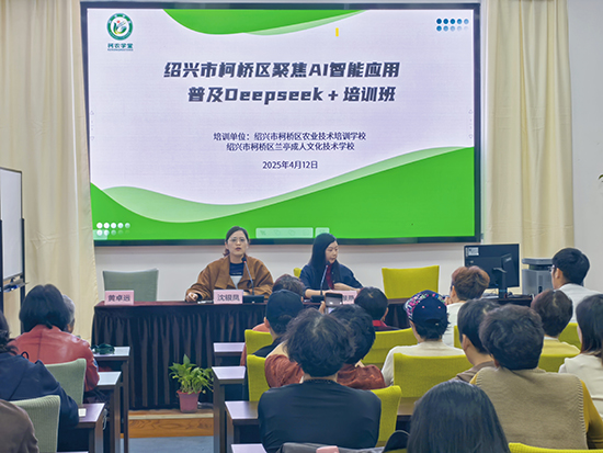 為加快推進(jìn)農(nóng)業(yè)農(nóng)村數(shù)字化發(fā)展,提升新型職業(yè)農(nóng)民數(shù)字技能水平,4月12日,由柯橋區(qū)農(nóng)業(yè)農(nóng)村局農(nóng)業(yè)技術(shù)培訓(xùn)學(xué)校主辦、蘭亭成人文化技術(shù)學(xué)校承辦的“聚焦AI智能應(yīng)用,普及Deepseek+培訓(xùn)班”專題培訓(xùn)成功舉辦。78名來自各鎮(zhèn)街的農(nóng)業(yè)從業(yè)者、電商創(chuàng)業(yè)者及AI技術(shù)愛好者齊聚一堂,共同探索人工智能賦能鄉(xiāng)村振興的實踐路徑。