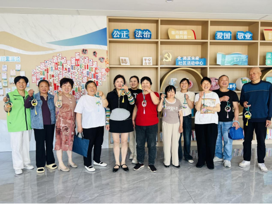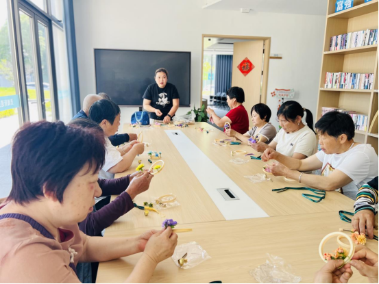 在制作過程中,老人們全神貫注,他們認真地擺弄著手中的材料,眼神中透露出專注與投入。盡管部分老人在操作精細動作時稍顯遲緩,但他們相互幫助、彼此交流,現場充滿了溫暖與協作的氛圍。有的老人遇到難題時,身旁的伙伴會主動伸出援手,共同探討解決辦法;有的老人則發揮創意,為自己的掛件增添獨特元素,現場不時傳來陣陣歡聲笑語。