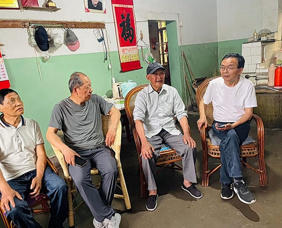 一行人帶著禮品走進姚長明家,房間布置簡樸。姚長明見這么多人來探望自己很高興,精神矍鑠,十分健談。一打開話匣子,老人記憶猶新,種種往事歷歷在目。1951年3月參加工作,先后在視北鄉、視南公社、東三公社、楓橋蠶種場等處就職。“辦法總比困難多,無論身在哪里,我都想把當地的發展搞好。”姚長明說,回顧自己的一生,令他最驕傲的莫過于帶領社員建起了“東三農機廠”,也就是“諸暨市汽車制動配件廠”的前身。“當時生活生產艱難,我想著不能再這樣落后下去了,要把經濟搞起來,讓群眾富起來。” 20世紀70年代初,已在東三公社任職幾年的姚長明說干就干,召集了公社干部、生產隊長、財稅人員等40多人到余姚學習取經,買回四臺儀表車床,又請來師傅,把原東三公社加工廠變更為“東三農機廠”,從加工茶葉、修理腳踏打稻機的綜合加工廠,轉型為生產汽車五金小配件的農機廠。1979年姚長明退休后,仍持續關注東三的發展。諸暨市汽車制動配件廠便成了帶動汽配行業發展的培訓學校,每年都有一批技術骨干和銷售人才走出去創業,為楓橋鎮的塊狀經濟發展奠定了堅實基礎。老人沉浸在自己70多年的工作歷程中,面對提問,清晰解答。據他兒子說:昨天還上山去砍毛竹呢。一行人現場為老人書寫大大的“壽”字給他,老人欣然接受,并與大家合影留念。