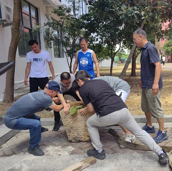 搬運現(xiàn)場,行政干部們二話不說,挽起袖子一起發(fā)力,或是扶穩(wěn)缸身,或是清理安置點。這里,沒有命令,沒有指派,只有默契與共識——這口缸,必須安穩(wěn)落地,就像龍職的精神,必須代代相傳。缸雖重,情更重。它不再只是一口缸,而是“龍職四見精神”的象征:見行動——人人伸一把手;見速度——迅速響應齊上陣;見成效——安全運抵新家;見品質(zhì)——安置得端莊穩(wěn)妥。