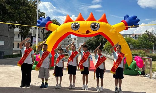 跨越“五自”邁向成長。校門口,五年級的學(xué)長學(xué)姐們身著整齊的校服,佩戴紅領(lǐng)巾,笑容燦爛地迎接新同學(xué)的到來。新生們踏上紅地毯,依次跨過五個寓意深遠(yuǎn)的小路障:“生活自理”“學(xué)習(xí)自覺”“行為自律”“文化自信”“人格自強(qiáng)”。每一步,都是對成長的致敬;每一跨,都是對未來的期許。希望每一位新生都能成為“五自少年”,自信、自律、自強(qiáng)地走向更廣闊的天地。