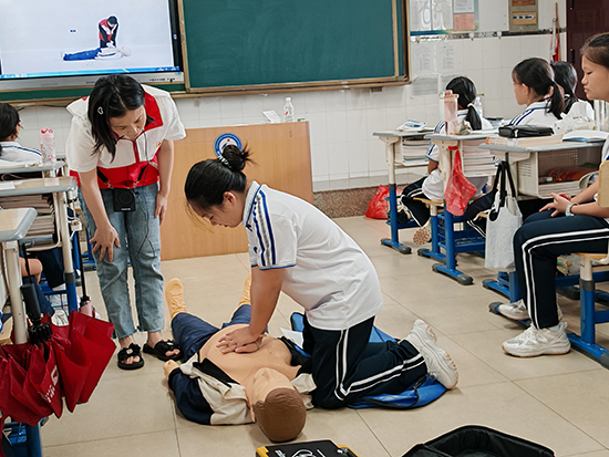 本次培訓為期兩天,課程設置科學嚴謹,內容涵蓋紅十字運動基礎知識、心肺復蘇(CPR)、自動體外除顫儀(AED)使用、氣道異物梗阻處理以及創傷包扎等急救技能。培訓采用理論講解與實操練習相結合的方式,確保每位學生都能掌握核心救護技能。