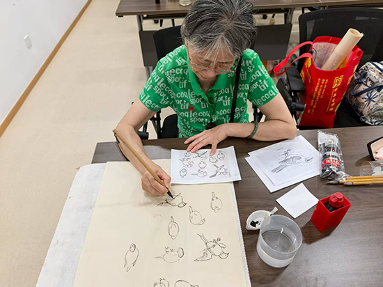 課堂上沒有年齡的隔閡,只有對(duì)水墨丹青的熱愛。一筆一劃勾勒間,時(shí)光仿佛慢了下來,老人們?cè)诠P墨揮灑中舒展身心,不僅收獲了繪畫技巧,更結(jié)識(shí)了一群志同道合的摯友。這方小小的畫室,正用墨香為社區(qū)老人的晚年生活,繪就出詩意與活力!(周瑜)
